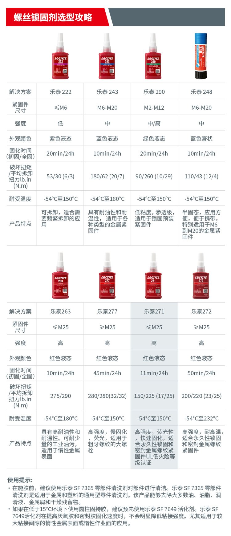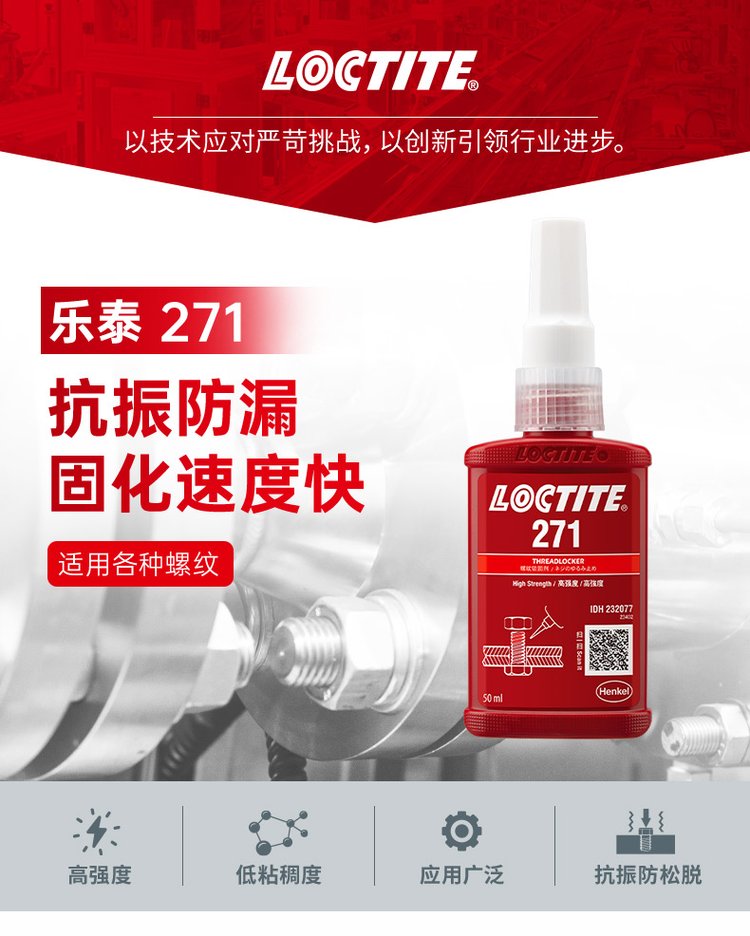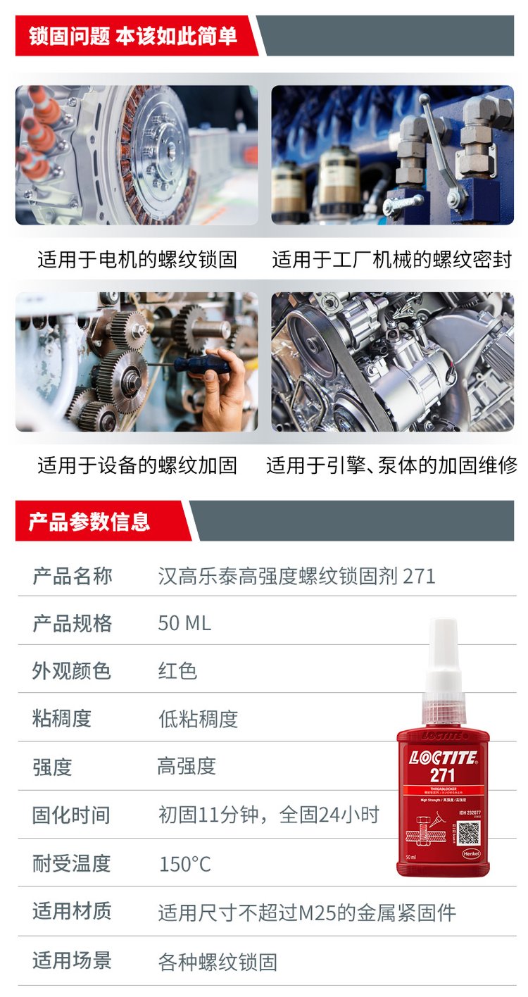 乐泰271螺纹锁固剂锁定密封大型螺栓UL低火险等级认证50ml