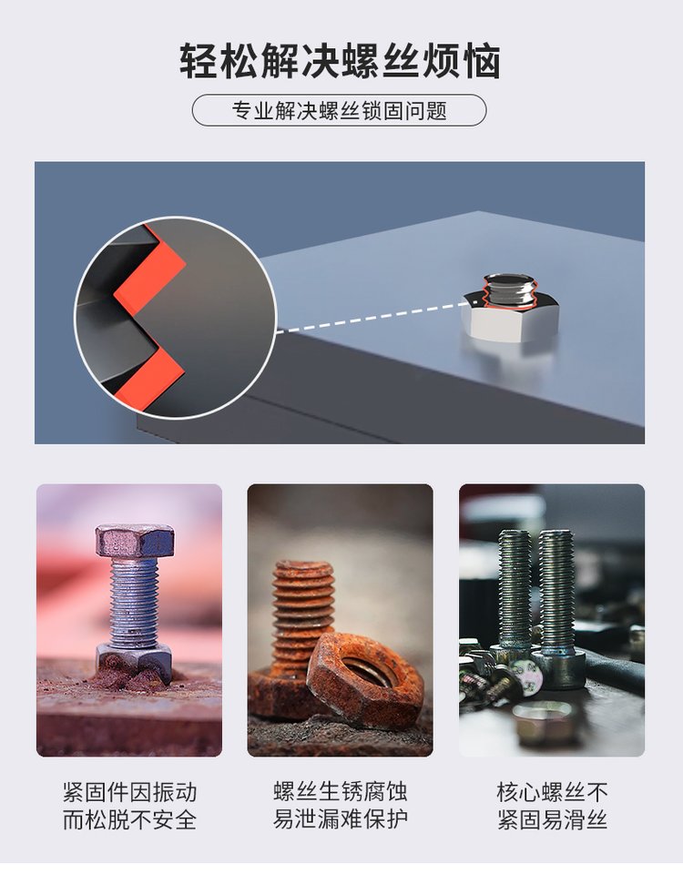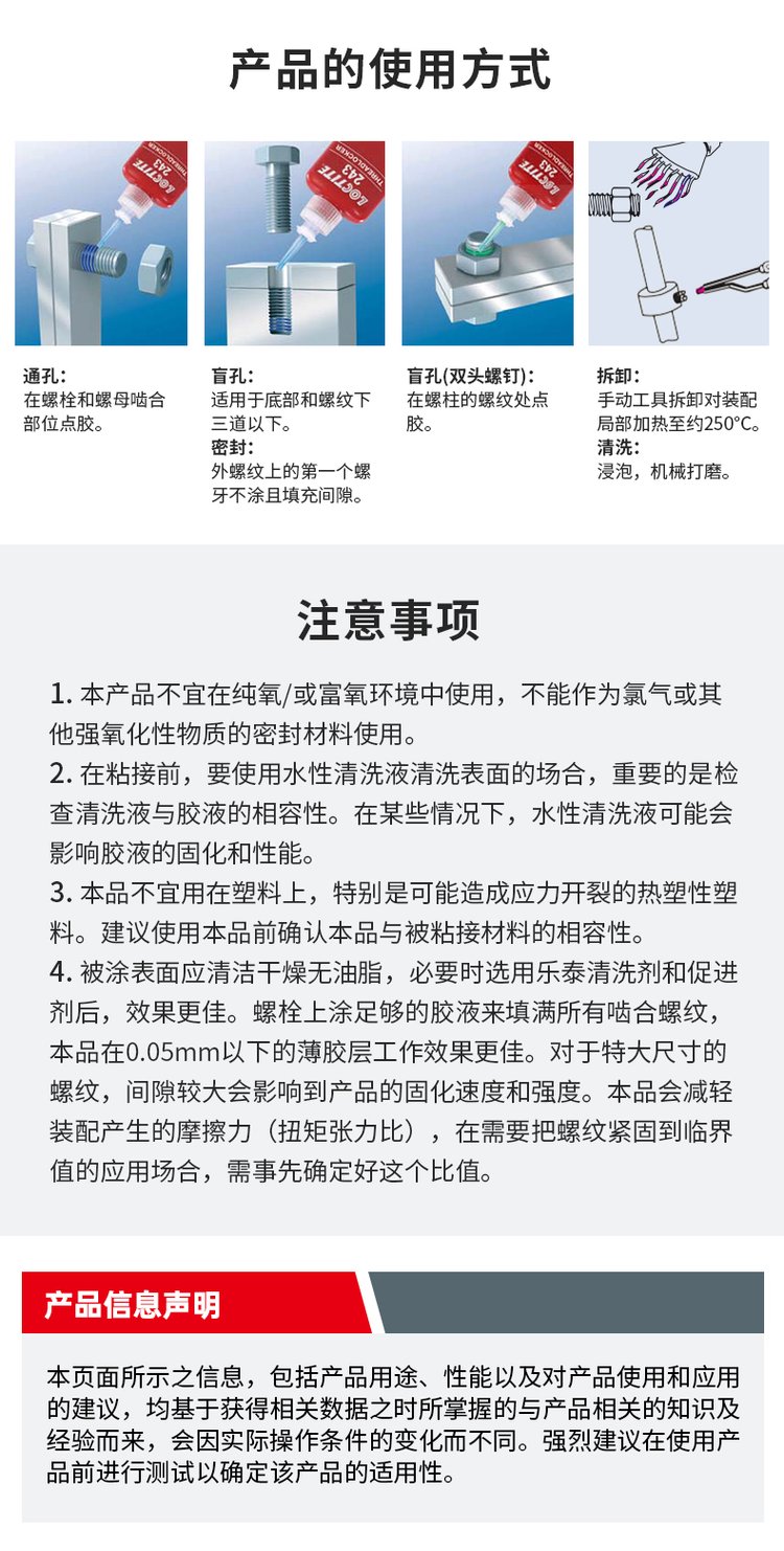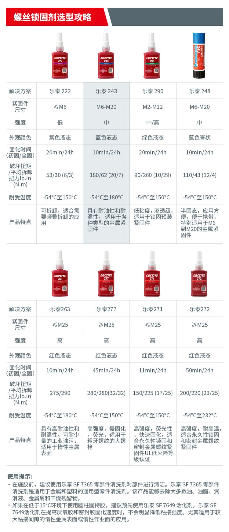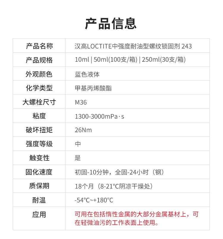 功能 | 中强度螺纹锁固,抗震防松 | ||