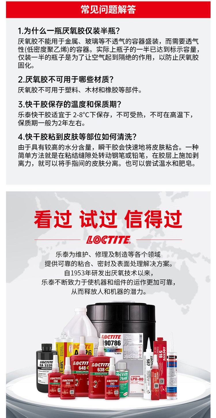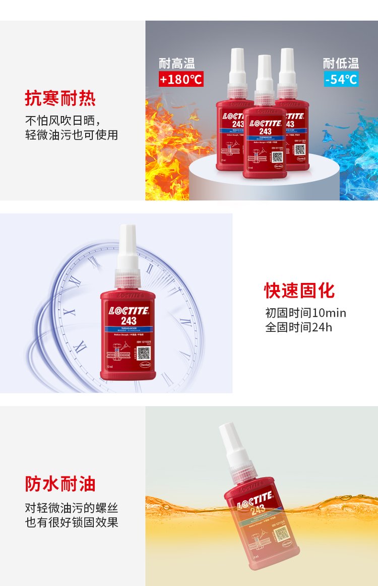 乐泰胶水243螺纹锁固剂 电动机/引擎/压缩机装配螺栓紧固 机械维修螺丝固定 50ml 品牌 | LOCTITE 乐泰 | ||