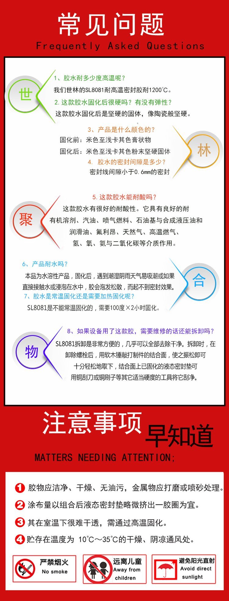 SL8081耐1200度液态密封胶? ? ?450g/支? 也可订制:1.5KG/瓶?? 12瓶/箱