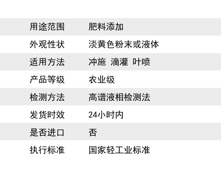 适用方法 | 冲施 滴灌 叶喷 | ||