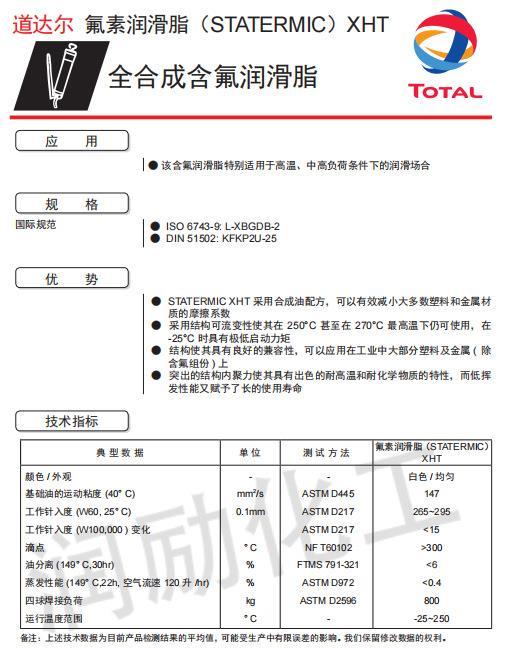 道达尔氟素润滑脂STATERMICXHT全合成含氟脂高温中负荷