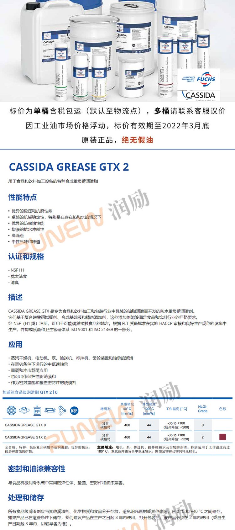FUCHS福斯加适达食品级CASSIDAGREASEGTX极压复合磺酸钙基脂