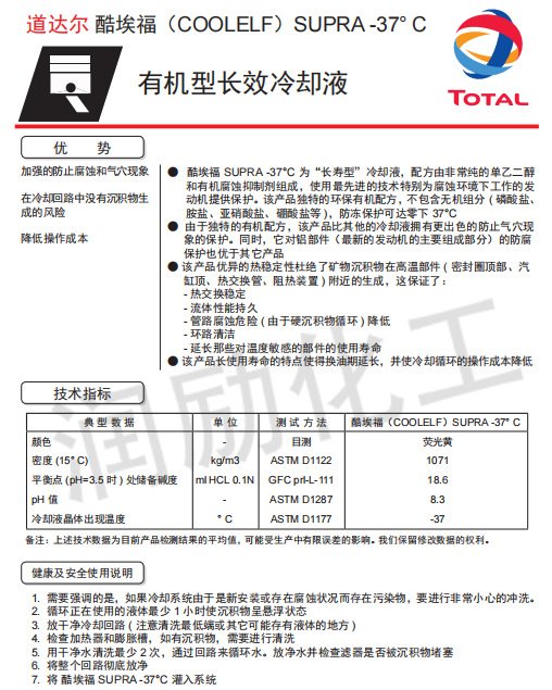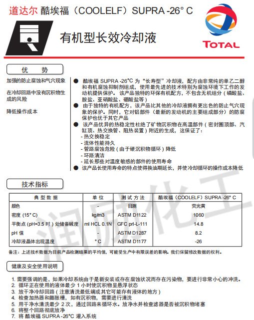 道达尔 酷埃福 COOLELF SUPRA -26° C/ -37° C有机型长效冷却液 品牌 | 道达尔 | ||
