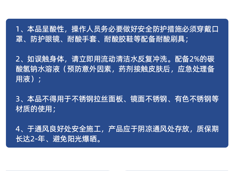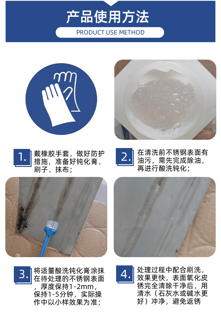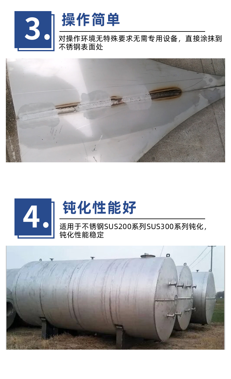 产品特性 | 快速的溶锈.化焊斑氧化皮性能,处理后形成钝化膜,呈银白色均一稳定,具有优异的防锈耐蚀性能 | ||