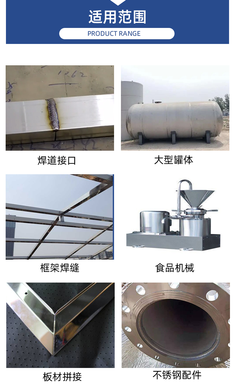 用途范围 | 适用于304.316.316L.321等型号的不锈钢食品机械,化工器械.印染设备等不锈钢制品 | ||
