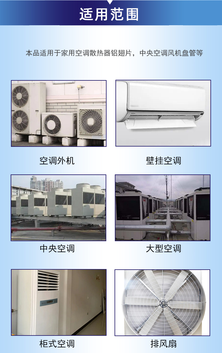 适用范围 | 家用空调散热器铝翅片,中央空调风机盘管等 | ||