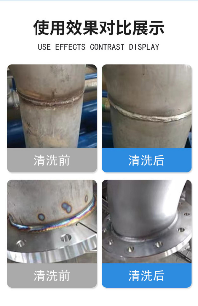 产品特性 | 适用于清除各种型号奥氏体不锈钢零件、板材及其设备表面的锈、氧化皮、焊接后产生的黄蓝黑色焊等污物 | ||