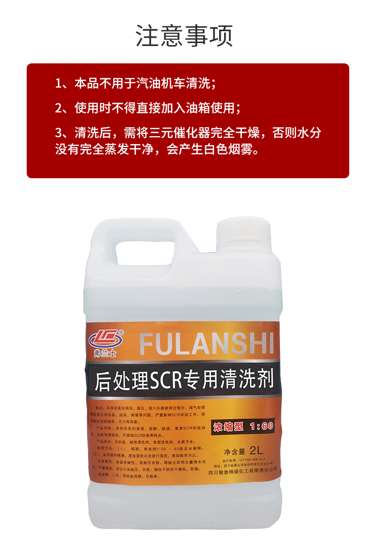 产品性能 | 具有优良的渗透,溶解,疏通,复原SCR系统功 效。且能快速高效,不腐蚀SCR设备等特点。 | ||