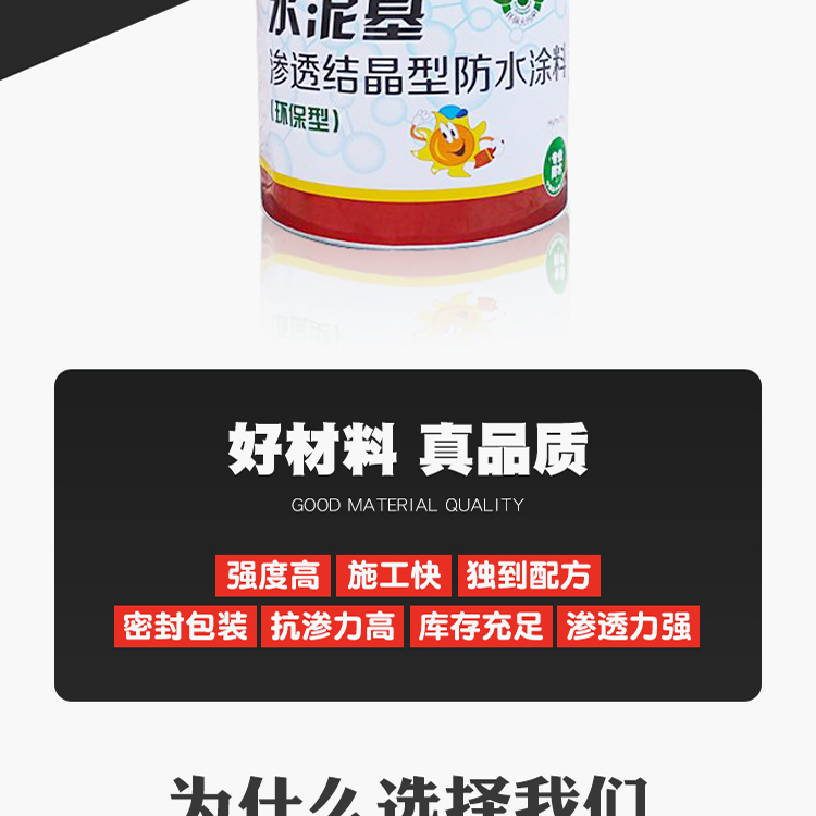 水泥基渗透结晶型防水涂料隧道地下室内外墙混凝土建筑背水面防水