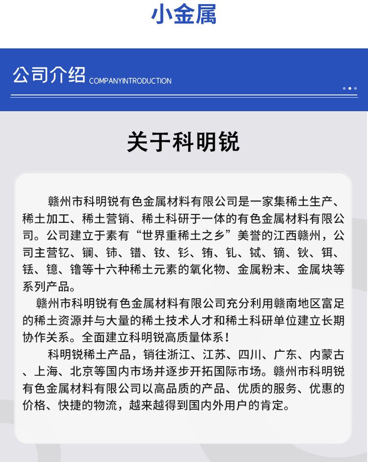 商铺名称:赣州市科明锐有色金属材料有限公司