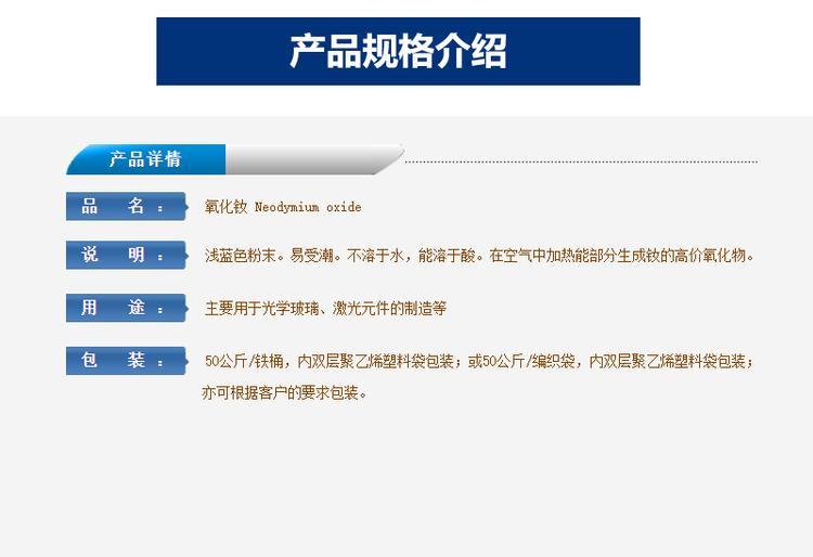 应用领域金属钕、玻璃、陶瓷着色剂、催化剂、激光晶体、光纤材料