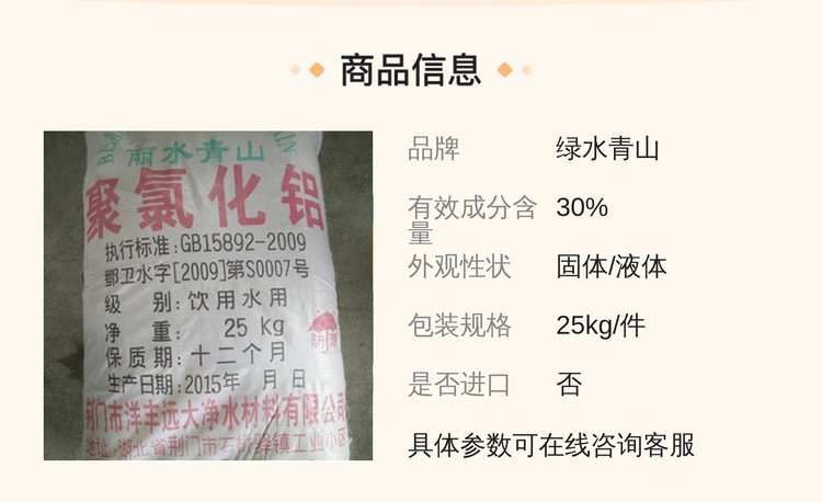 绿水青山聚合氯化铝30饮用水级净水剂品质保证