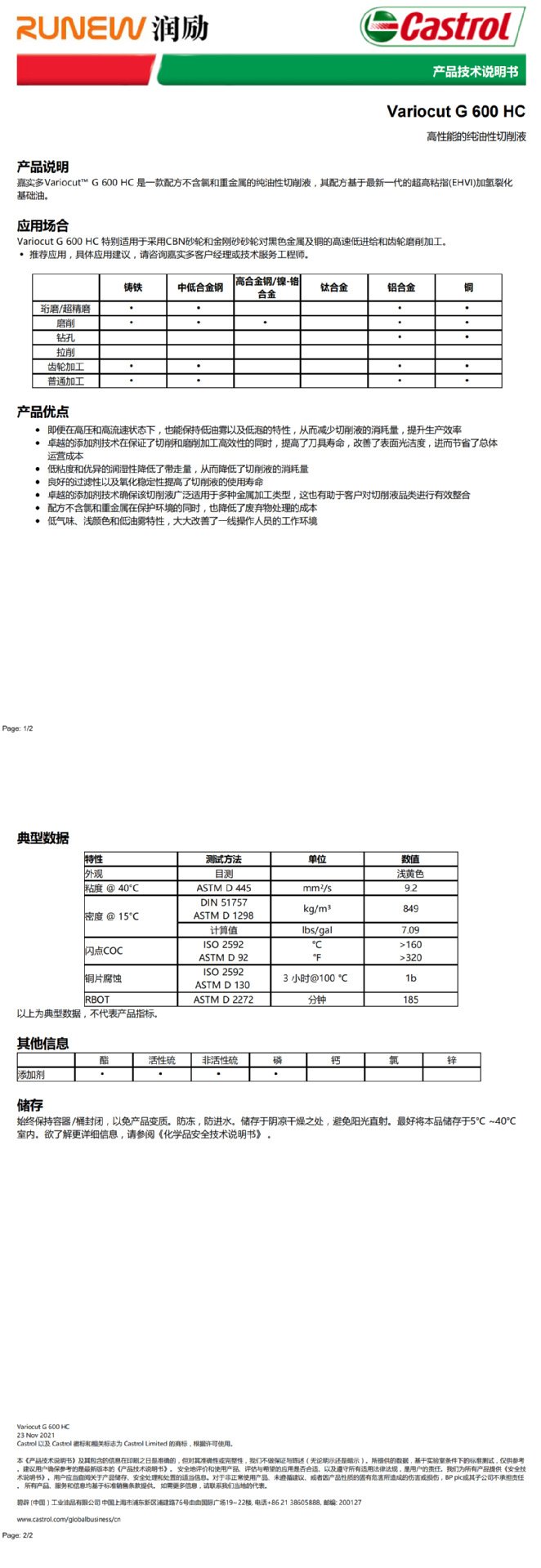 嘉实多CastrolVariocutG600HC纯油性切削液CNC砂轮切削油