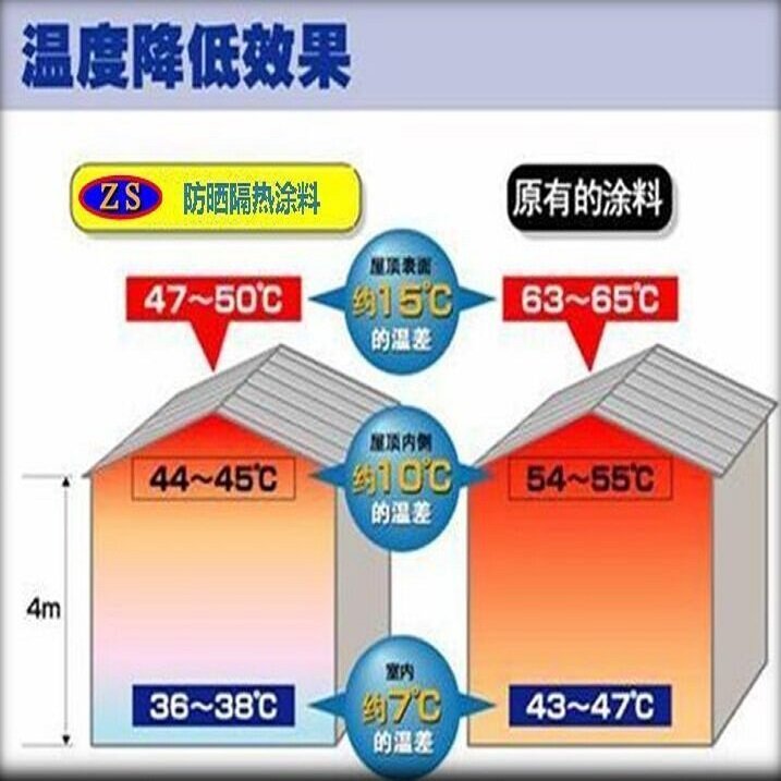 屋顶防晒隔热涂料——防晒隔热涂料的作用好处 屋顶、楼顶、向阳屋面在夏季需要降温防晒,采用防晒隔热涂料时好的选择。防晒隔热涂料是一种防止太阳光热对对建筑增温加热的功能性涂料,具有隔热、保温、防水防渗、装饰美观、环保健康等功能。不但可以在夏季降温防晒,冬季还能保温保暖的功能,2是建筑屋顶、楼顶防护措施必不可少装修材料。