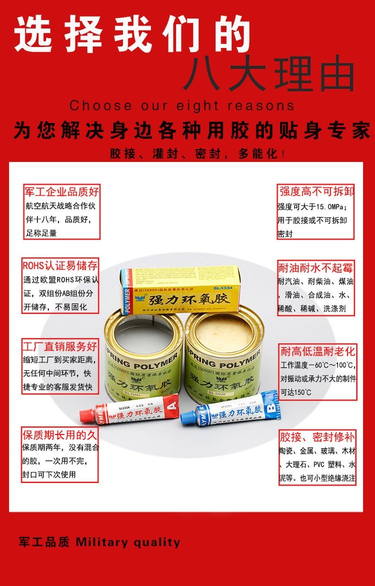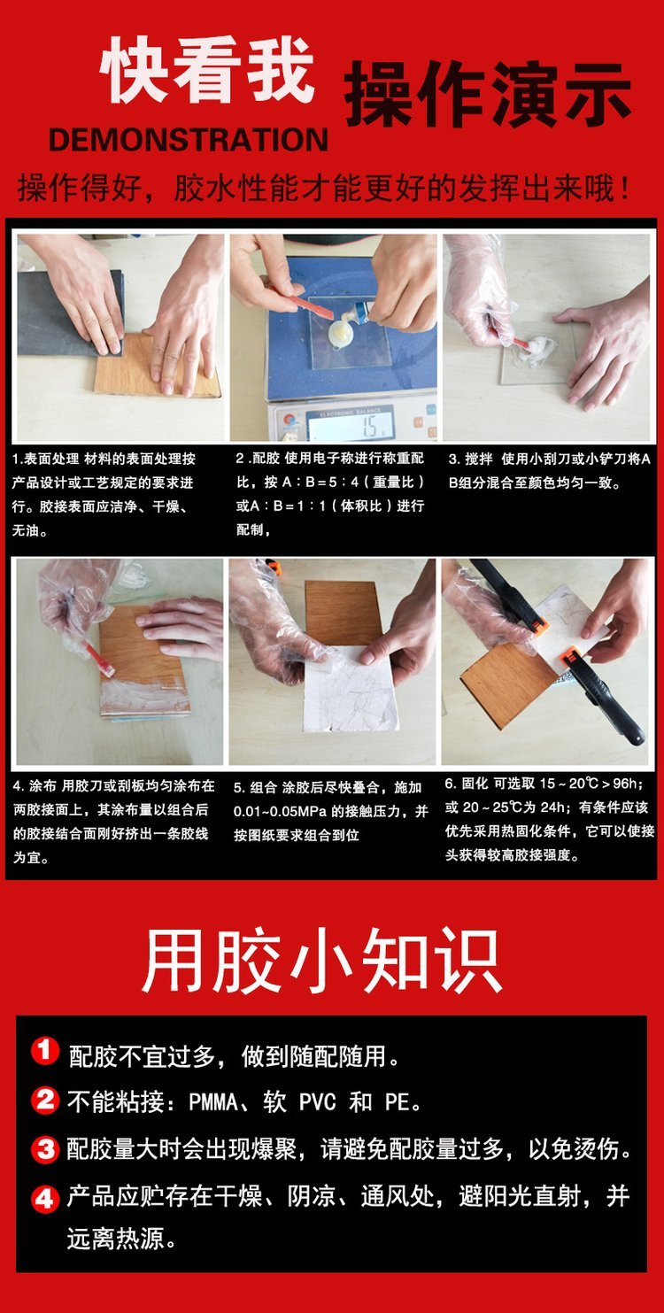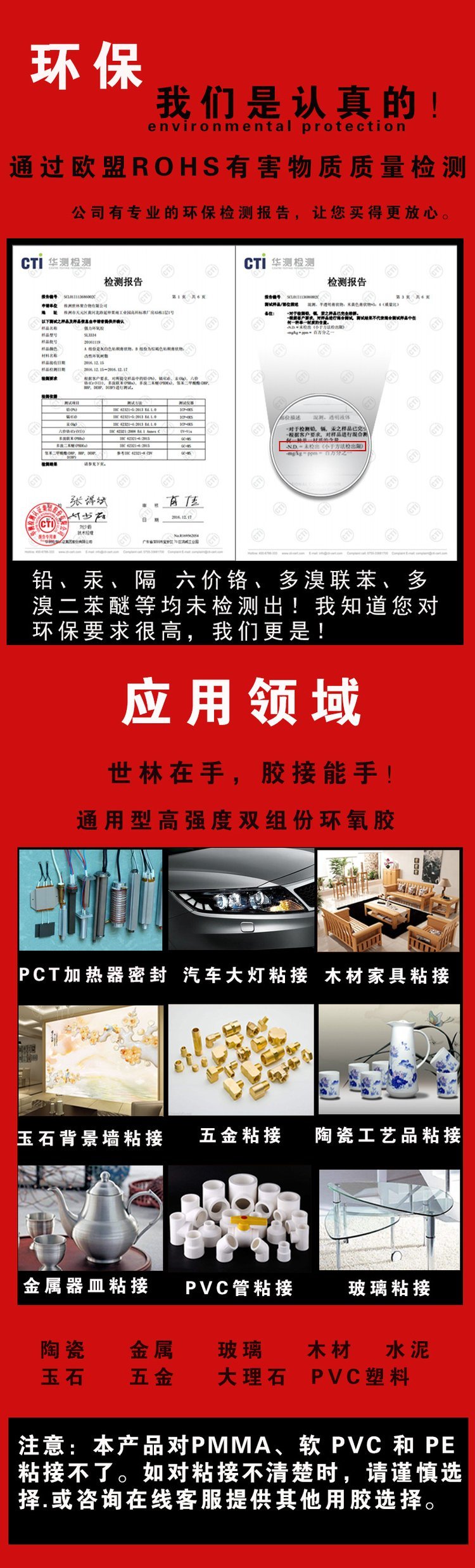 用于多种金属材料及非金属材料本身或相互胶接或不可拆卸密封,也可用于小型绝缘浇注、填补、涂复与浸渍。加入金刚砂粉和瓷粉可用于机床台面、导轨的修复。