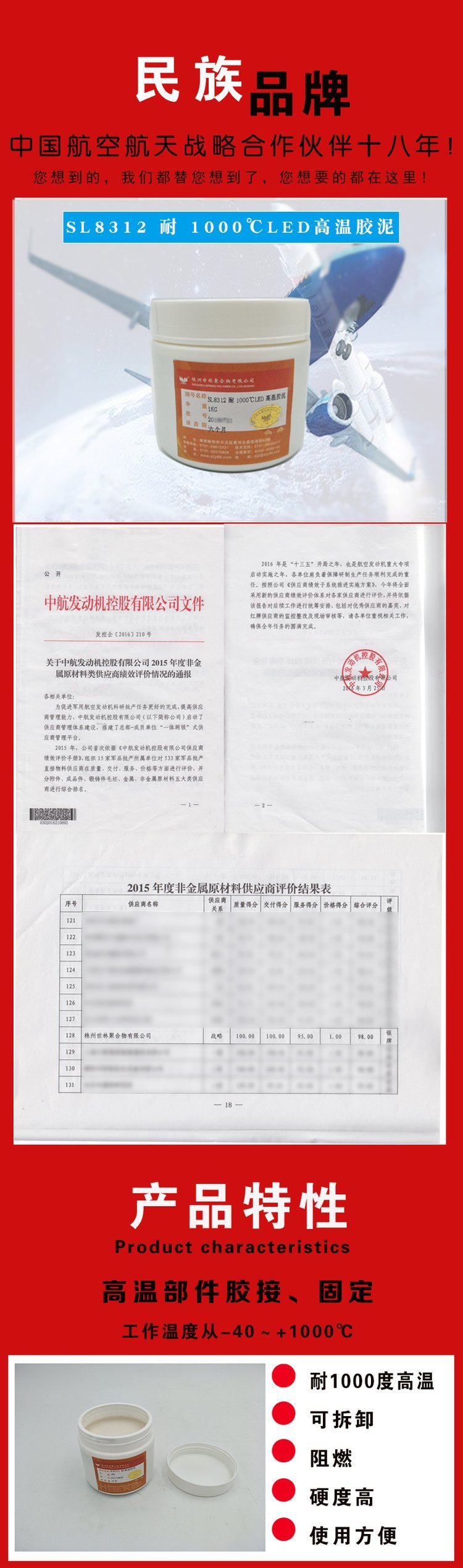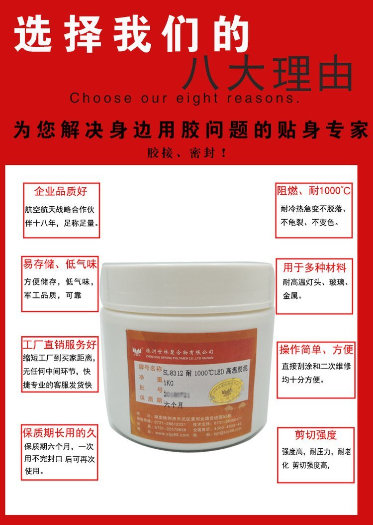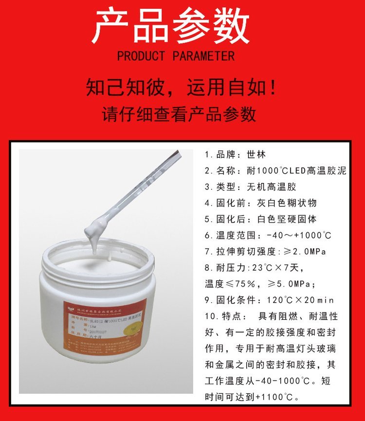 如果需要强度高的高温胶泥可选用世林的双组份 SL8302 高温灯头胶。