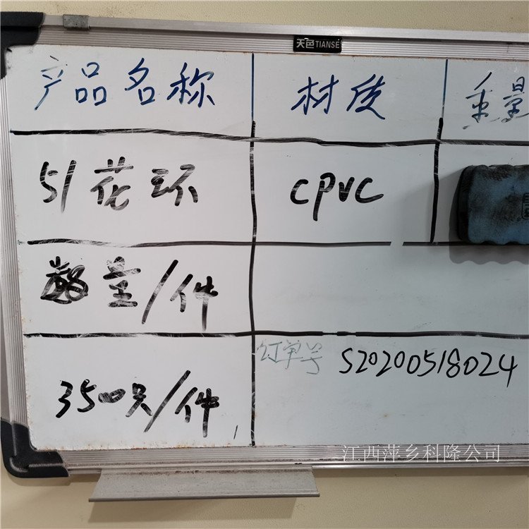 2020年7月23日国内某化工厂年产1万吨二(三氯甲基)碳酸酯项目订购CPVC花环填料一批,其中有直径51,直径95型号的,