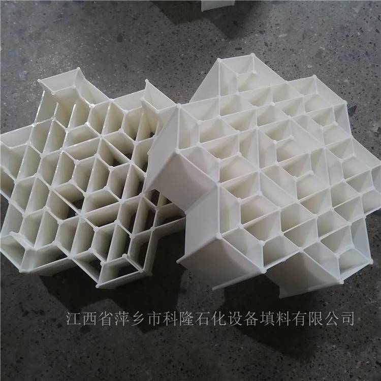 2、与三菱连重环相比,在 填料比表面积基本不变的情况下,取消了三角形连接筋板,通过优化填料单元格,既 了填料效率,又降低了填料阻力降;