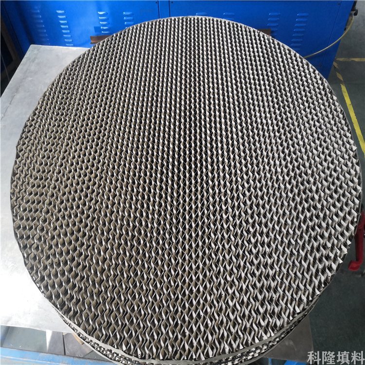 金属孔板波纹填料具有通量大、阻力些效率高、抗堵能力强的优点。在精馏、吸收、萃取等单元操作中广泛应用。
