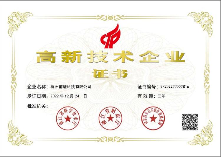 国家高新技术企业/国家级科技企业孵化器前进基地/省级科技创新型企业/钱塘新区前进科创园