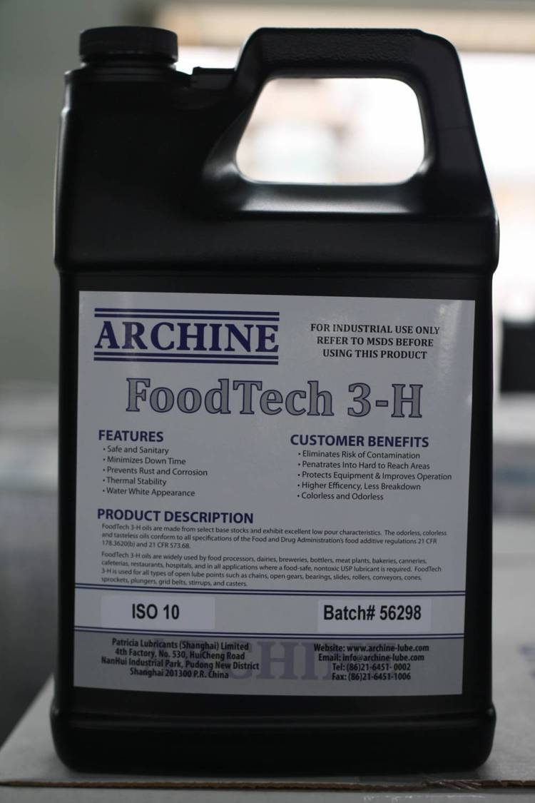 ????? ArChine Foodtech 3-H系列润滑油特别适用于要求使用可溶性油的设备。产品通过USDA/NSF 3H认证,对于食品加工厂来说是一个很好的替代品。