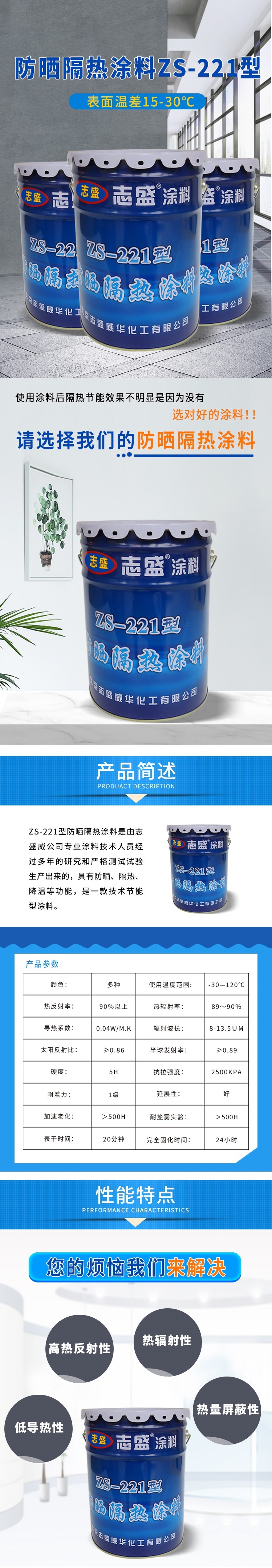 志盛威华ZS-221防晒隔热涂料易挥发溶剂罐反射降温涂层