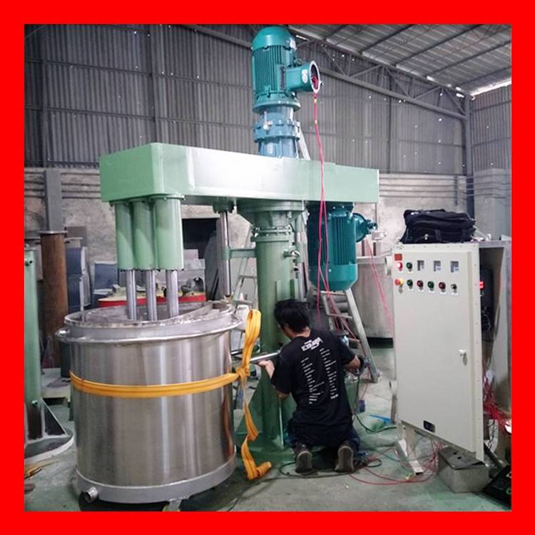 本产品适应高粘度物料的分散与搅拌,如珠光浆颜料,白胶浆,硅胶树脂等,采用两边双轴双盘高速分散,中间低框式搅拌桨低速搅拌,使物料充分分散搅拌均匀。