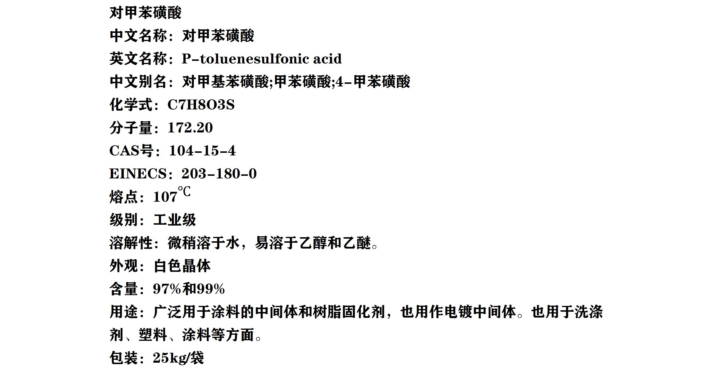对甲苯磺酸97含量洗涤剂原料工业树脂固化剂