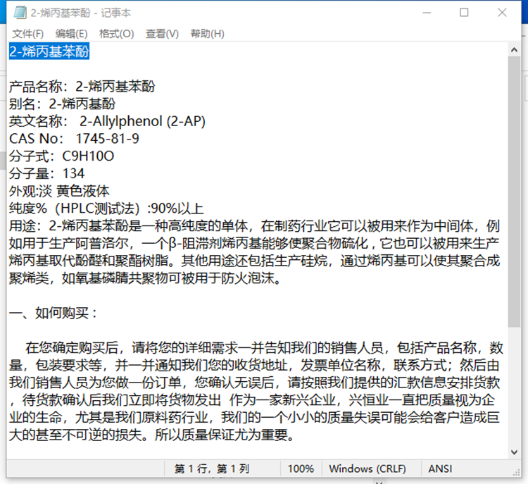 产品名称2-烯丙基苯酚