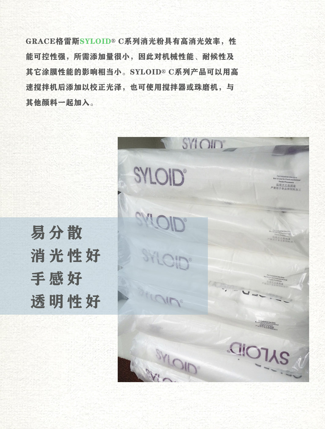 GRACE格雷斯消光粉SYLOIDC803易分散消光性好手感好透明性好