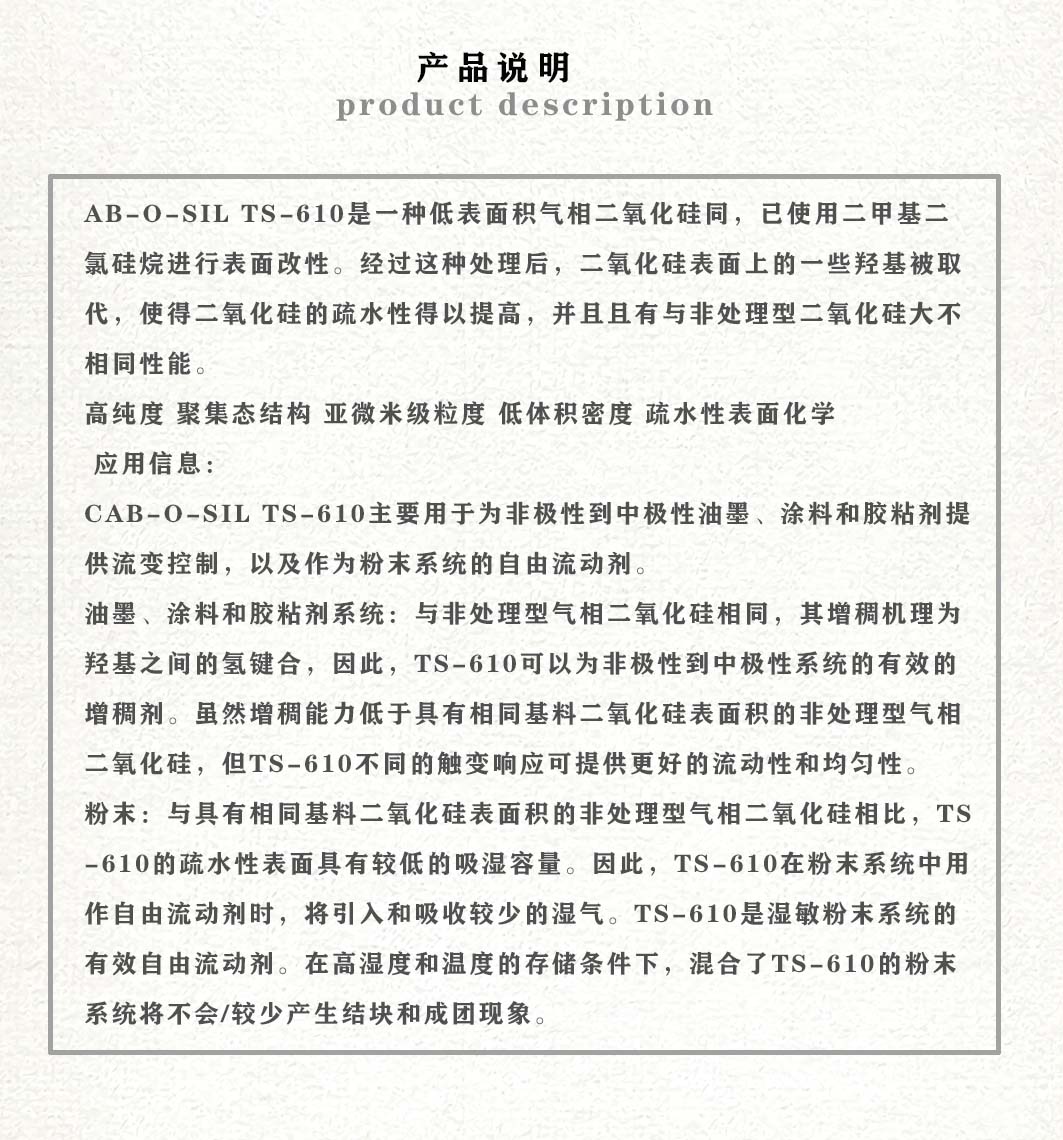 卡博特CABOT气相二氧化硅TS610白炭黑进口原料