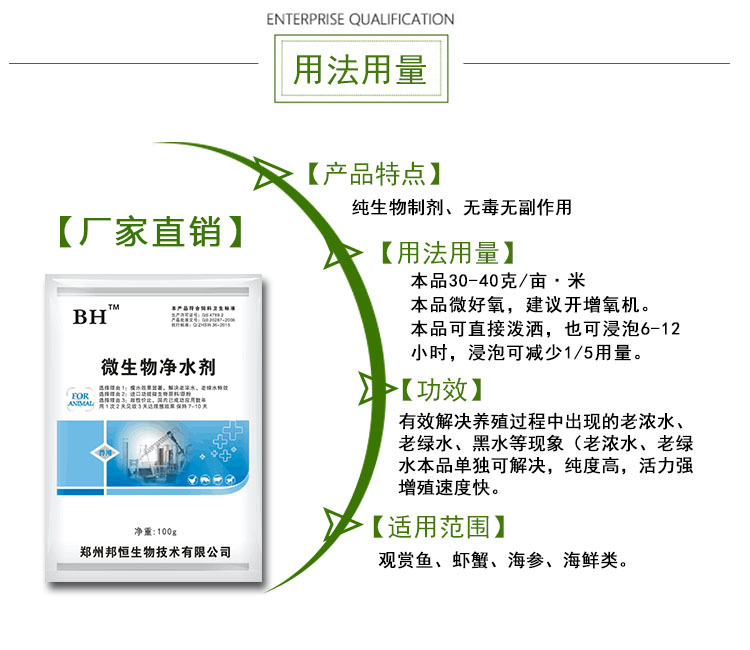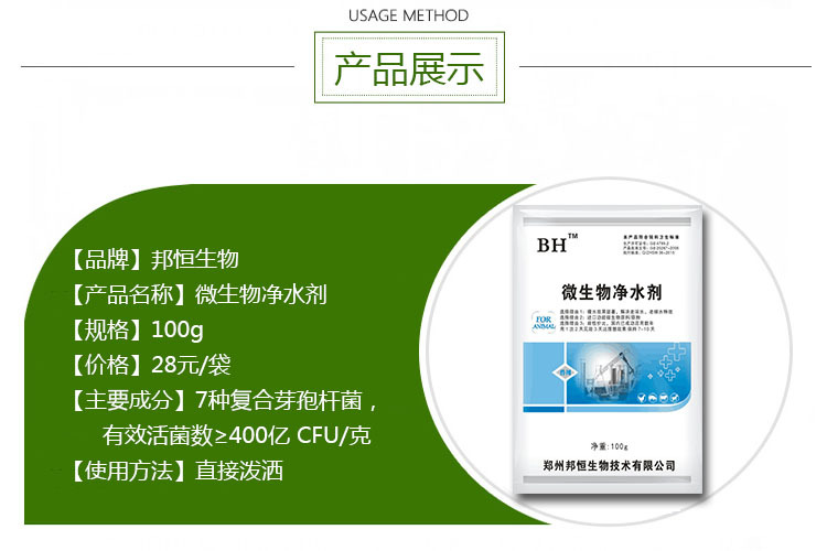 品名:邦恒微生物净水剂; 用法用量: