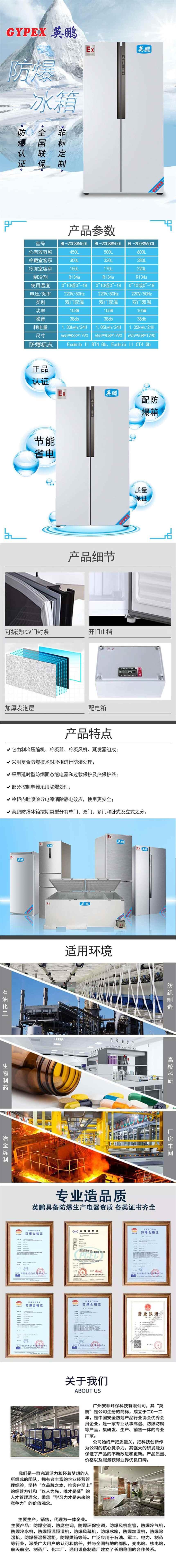 可广泛使用于石油、化学化工、医药、航空航天、实验室、储藏、军事等部门具有ⅡC级,温度组别为T4的性气体混合物的l区(或2区)内部危险性场所,BL系列工业级集成防爆冰箱,是采用集成防爆技术,按工业环境使用要求制造的ⅡC级防爆制冷系统。