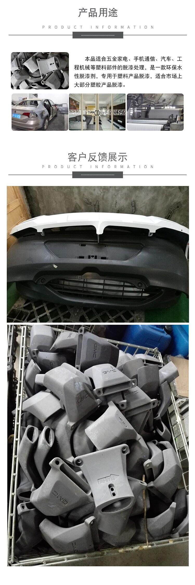 适用范围:本品适合五金家电、手机通信、汽车、工程机械等塑料部件的脱漆处理。