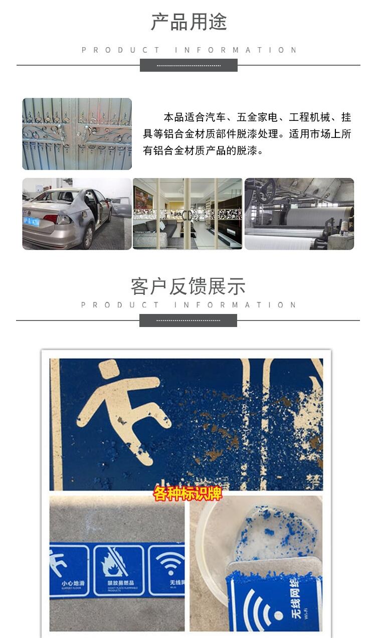 2、本品适用市场上所有铝合金材质产品的脱漆。