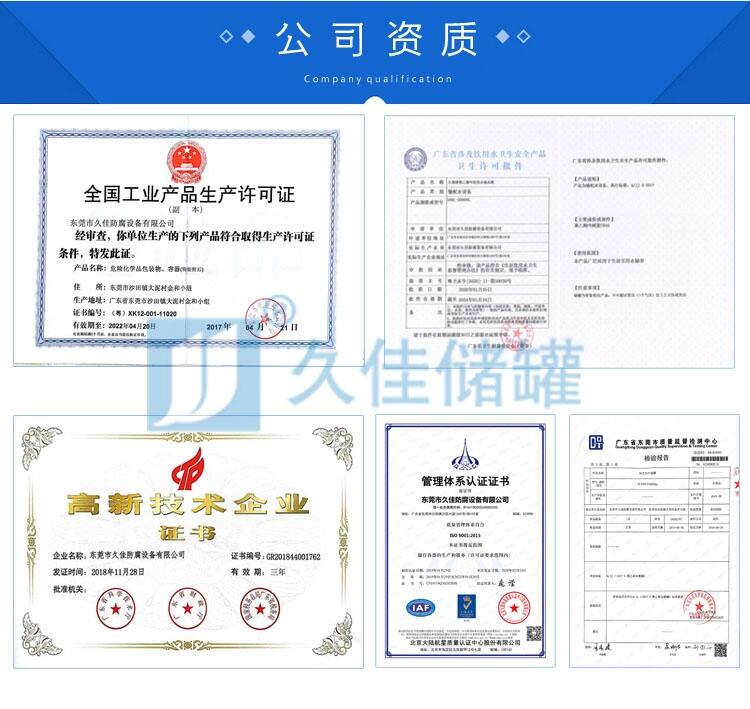 2)公司多年研发,结合国内外先进的滚塑产品生产配方,研发出专属久佳防腐环保型pe储罐生产配方,能够大大提升产品的质量与性能,所用辅料也是绿色卫生安全无污染的辅料,质量有保障;