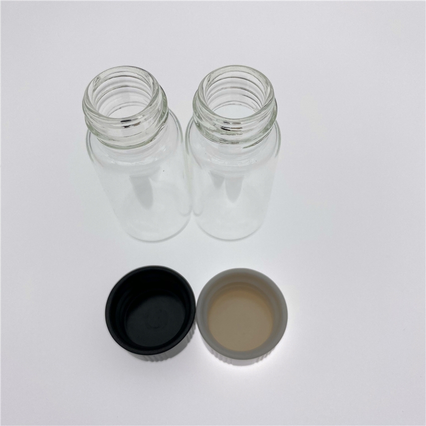 产品含一个透明10ml样品瓶、一个PTFE/硅胶垫片和一个胶木盖(黑白两色可选)