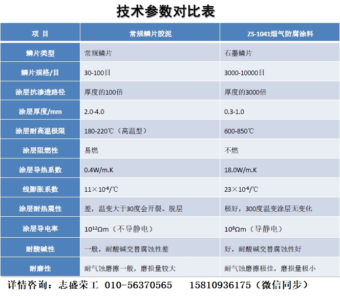 超强的附着力,线膨胀系数高:ZS-1041志盛威华脱硫烟气防腐涂料采用志盛威华特制的涂料成膜物,无机颜料作为填充物,涂料组成物中含有的化学键---羟基(OH)等,与金属离子能形成化学键结合,而且在涂料偶联剂帮助下,能很好的和金属材质形成共价链结合,涂层与基体材质结合力好,附着力达到一级。ZS-1041志盛威华烟气防腐涂料涂层与基体结合力强,烟气防腐涂料组合物中含有的金属氧化物纳米材料和稀土氧化物超微粉体,帮助涂层形成一个致密的界面过渡层,使其综合热力学性质与基体相匹配,志盛威华公司的ZS-1041烟囱烟气防腐涂料,涂层还有较高的抗挠曲性及热膨胀抗变性,能抵抗钢烟囱虽经加固但仍不可避免的运行中振动。