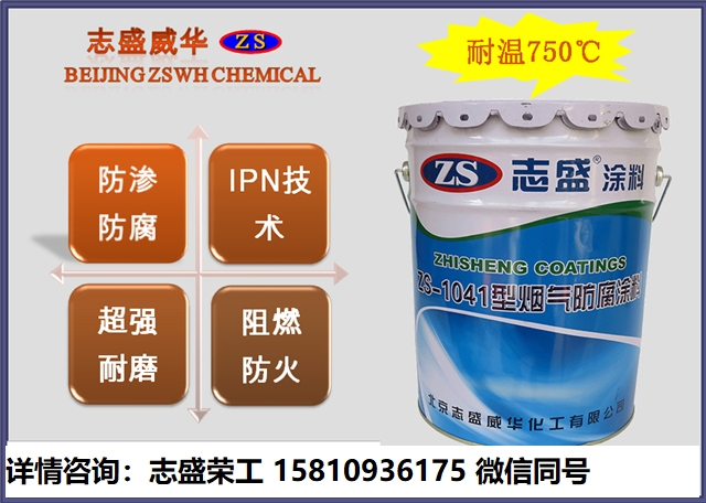 ZS-1041志盛威华烟气防腐涂料以无机聚合物为主的互穿网络聚合物作为成膜物质,高温嫁接youj聚合物改性树脂,得到交替排列组成的多嵌段嫁接无机—youji螯合聚合物,溶液中含硅无机聚合物作为主链,附着力好,涂层光滑自洁,成膜性好,成膜致密降低介质损耗率。涂料固体颜料,在高温密封下制成耐磨陶瓷功能填料,提高涂层的硬度高耐磨,防蚀性能,抗冲击性、耐高温性和好的延展性。