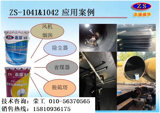 ZS-1041志盛威华烟气防腐涂料以无机硅改性树脂嫁接互穿网络聚合物为成膜溶液,以纳米硅微粉、碳化硅、氮化硼、细晶氧化铝、石墨、超细氧化锌、氧化钛、微粉氧化锆等。涂料各组分的相互作用和协同效应工作原理,使涂层具有表面能低、耐腐蚀性高,硬度高,与基体结合力大等综合异性能。