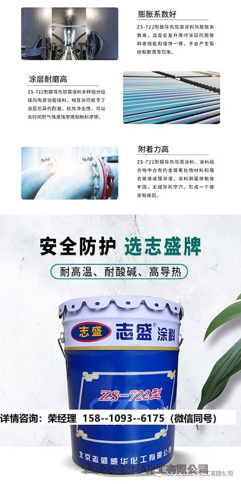 但是受当地水质以及使用环境的影响,加热炉存在着较为严重的结垢现象,尤其是当加热炉的火管、烟管发生结垢后对设备的不良影响:(1)垢下腐蚀,会导致烟管、火管的老化,甚至发生爆管现象,缩短设备的使用寿命,同时腐蚀层的产生又会促进垢层的产生和附着;(2)降低换热效率,炉管承受压力增大,存在着较大的安全隐患;  从不影响导热,减少垢下腐蚀以及降低垢层附着力的方面着手,志盛威华的ZS-722以硅酮树脂、钝化的铝溶胶螯合而成的无机改性成膜溶液,耐温高,成膜性好附着力高,导热好,同时涂料中添加碳化硅、导热石墨、氮化硼、碳化铝、石墨碳管、三氧化铬、氯化铝、三聚磷酸铝,涂层表面光洁度高,自洁性好,同时兼具良好的耐酸碱腐蚀,良好的导热效果。722 6.2 6.3