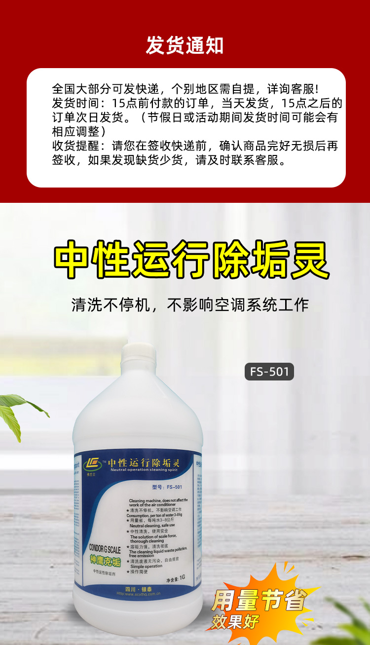 4.FS-501运行清洗剂根据结垢状况可适时清洗,实现设备达到高效益.低成本运行