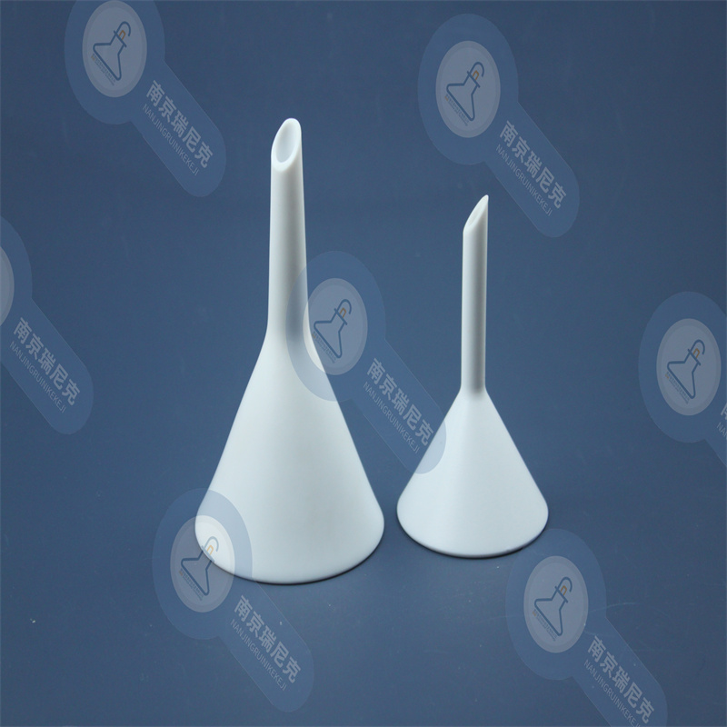 聚四氟乙烯(PTFE)漏斗: 非凡的化学耐受性,几乎可耐受所有的化学溶剂,表面光滑,标准型液体过滤漏斗。适用于向细口容器中增加液体,亦用于气体发生装置中注入液体,防止液体逸出。