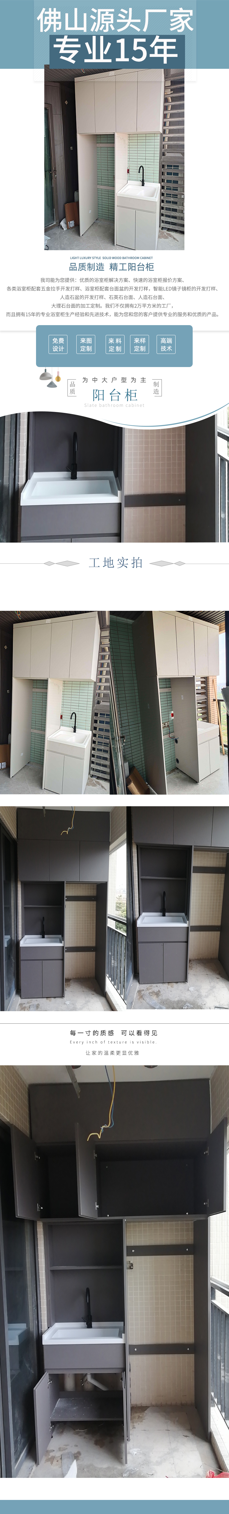 定制阳台洗衣柜双机叠放洗衣机切角带搓板台盆池一体组合柜