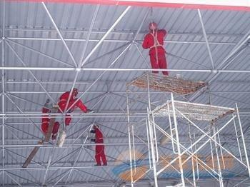 (四)高空安装工程:烟囱安装避雷针、航标灯,信号灯,钢烟囱安装,烟囱安装爬梯、安全平台、安全护网、烟囱顶口云梯安装及各种铁塔安装,厂房、车间玻璃安装等。