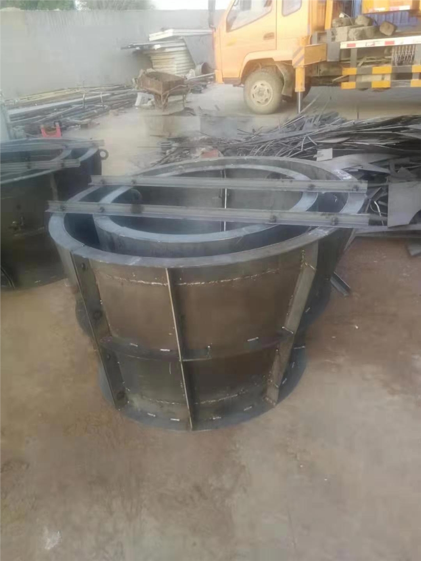 圆形检查井模具:圆形井模具的高度一般为1m、1.5m甚至2m,根据内径尺寸大小的不同钢材厚度有所不同。一般来说,钢材厚度约为3mm、5mm甚至7mm这样,根据不同的规定要求对钢材进行加厚处理。这种模具生产出来的污水井预制件能够对污水进行有效的处理,在保护环境、节能减排方面有着很大的作用,同时也增强了人们对环境保护的意识。圆形检查井模具一般应用在排水设施当中,比如一些排水管道建设就经常会用到这种模具。