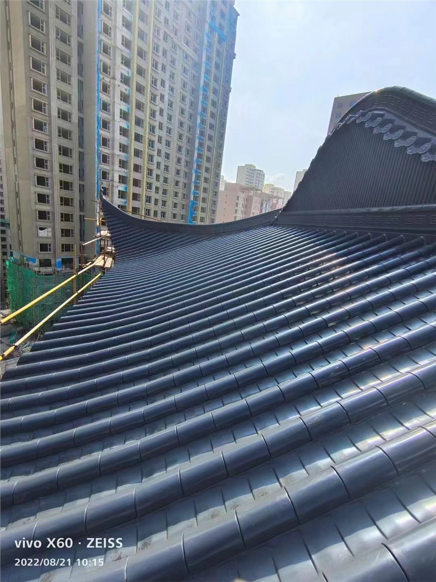 3.铝镁锰合金瓦的工艺区别,现在的加工工艺主要通过高端精密设备滚压成型,瓦当滴水采用模具冲压成型,很好的解决了形状的问题。