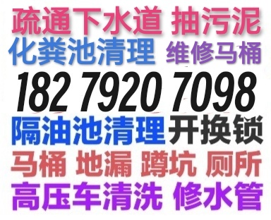 全城服务【182一7920一7098】下水道疏通,马桶地漏蹲坑厕所小便池,化粪池清理隔油池,专业抽粪,抽泥浆水,高压车清洗,开换锁,汽车锁,保险柜,防盗门锁,换锁芯,水管维修马桶,管道疏通厕所,马桶疏通蹲坑,地漏疏通小便池,蹲坑疏通洗菜池,高压清洗。 【壹伍捌-陆贰柒陆-柒伍柒肆】宾馆,酒店,小区,单位,餐馆,修太阳能,改下水管,修装马桶,水电安装,修家电,清洗家电,修水管,空调,洗衣机,电热水器,空调加液,打孔,清洗油烟机。 (一) 厨房下水道疏通、卫生间马桶疏通地漏、浴缸疏通、面盆疏通、蹲便疏通、脸盆疏通、水池疏通、小便池疏通、阴沟疏通、窨井清掏、化粪池清理、清理污水池、清掏隔油池、高压清洗管道、市政管网清淤。 (二) 清理化粪池 清理隔油池,水管维修马桶,抽粪,抽泥浆,通马桶,抽运化粪池污物。 (三)管道疏通 ,污水管道疏通,排污管道疏通,市政管道疏通,家庭工业疏通。 (四)河床清淤 ,污水池清理,鱼塘清理,污水沟清理,沉淀池清理,泥浆清理。 (五)清掏隔油池 ,清掏污水池,清掏化池,清掏沉淀池,清掏下水道,清掏窨井,市政管道清淤。 (六)专项作业车抽粪 ,抽泥浆 ,抽化粪池;吸污车吸化粪池,吸污车清理污水池,污水厂转运污水。 (七)高压清洗 ,高压车清洗管道,高压车疏通管道,高压车冲洗油污管道,市政管道,楼道主管,地面排污管道。 (八)打捞各种首饰【158-6276-7574】王师傅。 ;