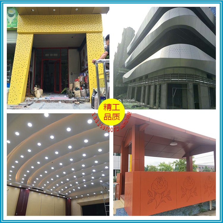 粤艺佰铝单板构造主要由面板、加强筋和角码组成。角码可直接由面板折弯、冲压成型,也可在面板的小边上铆装角码成型。加强筋与板面后的电焊螺钉连接,使之成为一个牢固的整体,极大增强了铝单板幕墙的强度与刚性,保证了长期使用中的平整度及抗风抗震能力。铝单板通过吊挂于建筑主体结构外侧 的轻质的围护墙面,使其形成大面积连续墙面,称之为铝单板幕墙。户外用铝单板厚度一般选择 2.5mm、3mm;低层和裙楼部分可选择 2.0mm 厚度,室 内墙面与吊顶用时可选择薄1.0mm 或1.5mm。包柱铝单板 弧形铝单板定制